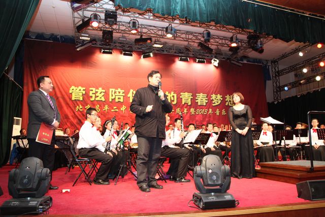 12月30 日晚,昌平二中管乐团在报告厅举行了“管弦陪伴我的青春梦想”昌平二中管乐团建团十周年暨2013新年音乐会。中国人民解放军军乐团办公室主任、中国管乐协会秘书长王启民、中国人民解放军军乐团国家一级作曲家王和声,以及昌平区音乐家协会主席驰骋等、昌平区教委体美科刘坤等领导和专家观看了演出。