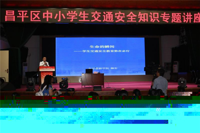 2018年6月15日,北京警察学院副院长柳实教授为昌平二中475名初一、初二学生以及40余名各学校主管安全教育的干部教师,进行了一场以“生命的瞬间——学生交通安全教育势在必行”为题的昌平区中小学生交通安全知识专题讲座。本次讲座是由昌平教委、昌平交通支队主办,昌平区交通安全教育基地、北京京都府驾驶学校协办,昌平二中承办,昌平教委副主任崔红英、后勤科科长黄长明、昌平交通支队副支队长周湧以及京都府驾校牛淑艳校长全程参加讲座。柳实教授时任汽车特种教师培训中心主任,被誉为警察驾驶培训“总教官”,在中央电视台、北京电视台“红绿灯”、“我爱我车”等多档栏目中,讲解汽车驾驶安全知识和各种交通事故案例分析。这次讲座,柳教授向在场师生深入浅出的讲解了各种交通安全基本知识,并用大量的日本交通安全教学视频和发生在大、中、小学生身边的真实案例,为学生们上了一堂生动的交通安全知识课,通过提问互动环节,再一次加深学生对交通安全知识的理解、掌握,提醒学生交通安全不能忽视,遵守交通法规至关重要。