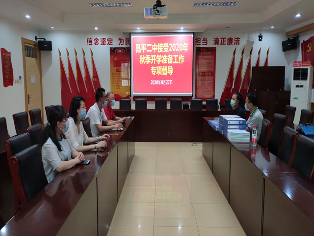 为督促指导全区各所中小学、幼儿园进一步做好新学年开学前的各项准备工作和疫情防控工作,确保错峰开学顺利有序进行,昌平区教育委员会组织开展2020年秋季学期开学有关工作情况专项督导。8月27日下午,挂牌督学虎素菊、教委李士杰来到昌平二中教育集团政府街校区,对学校开学的各项准备工作进行督导检查。昌平二中教育集团党委副书记王世国、德育副校长李继阳、工会主席闫静、办公室主任王洁睿全程陪同检查。