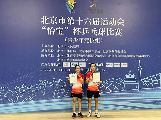 2022年9月11-12日,昌平二中教育集团乒乓球队在燕山体育中心参加了由北京市政府主办,由北京市体育局、北京市体育总会、北京市教委承办的北京市第十六届运动会“怡宝”杯乒乓球比赛。昌平二中教育集团乒乓球队共派出四名同学代表昌平区参加比赛。