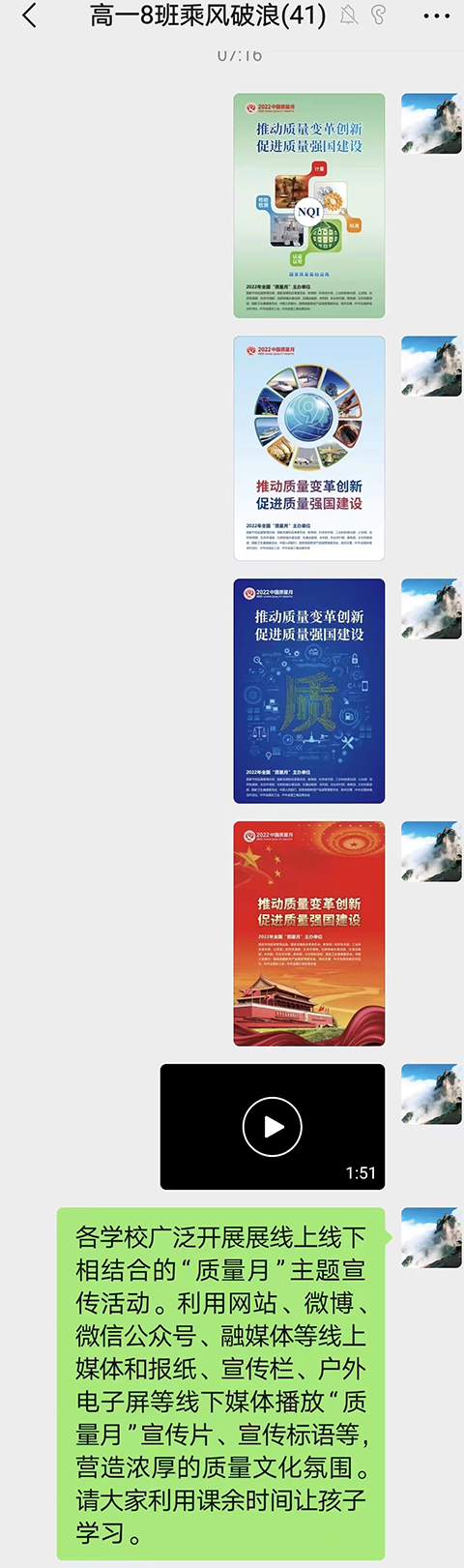 近日,昌平二中组织开展2022年“质量月”进校园活动,促进质量强国建设,以实际行动迎接党的二十大胜利召开!