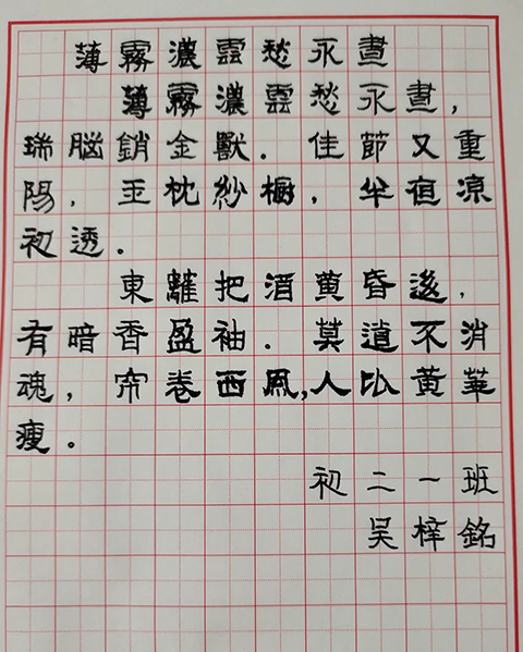 古人以重九为吉祥之日,赏菊、登高、佩茱萸、祭祖、求长寿、佑安宁,文人吟诗作对,墨客挥毫写意,留下不少珍贵的书法。秋风起,菊花黄,昌平二中开展与父母同写一幅字的活动,在临摹书法的同时,为父母送去祝福!
