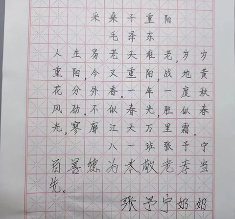 岁岁重阳,今又重阳,毛主席对重阳的感悟恢宏豪迈,令人精神振奋。而对于平凡的你我,重阳之日,则是感恩之日,“父兮生我,母兮鞠我。抚我畜我,长我育我。顾我复我,出我腹我。欲报之德,昊天罔极。”借此之际,昌平二中开展与父母同吟一首诗的活动,让我们在欣赏诗歌的同时,也带着敬意和感恩的心,感谢父母为我们的付出,愿天下父母健康平安!