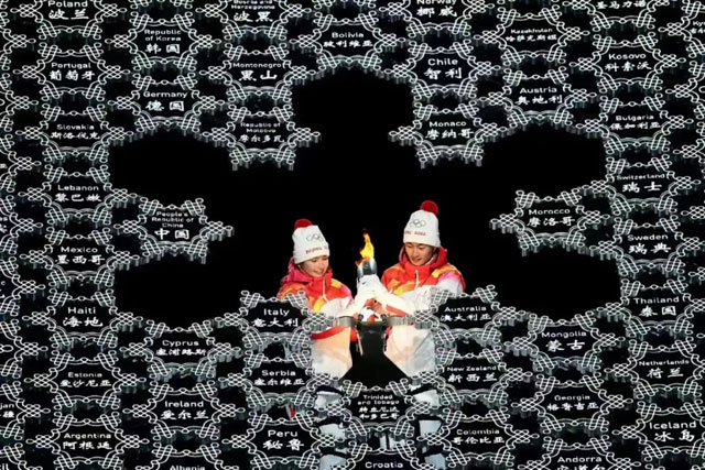随着运动员进场接近尾声,中国运动员入场时,同学们激动地大声喊着“中国加油”,随后同学们被简约、唯美、独特的开幕式演出深深吸引和震撼,当新疆阿勒泰运动员迪妮格尔·依拉木江与同伴赵嘉文一起点燃奥运火炬时,全场响起最热烈最持久的欢呼声,因为这至高无上的荣光不仅属于迪妮格尔,也属于每一个欢欣鼓舞的天山儿女!