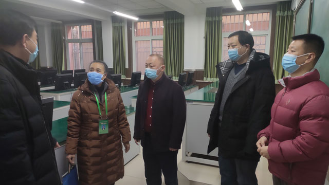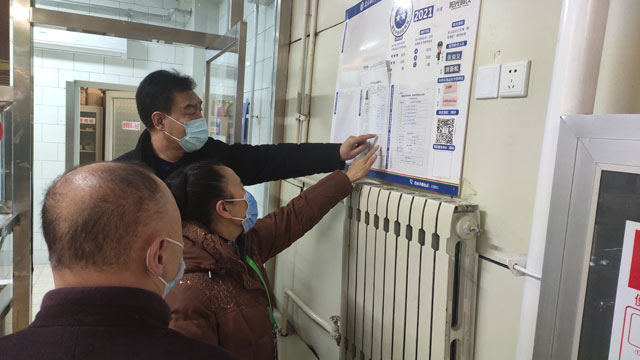 虎督学查看了学校新学期疫情防控相关制度和各项检查记录,听取了李继阳副校长关于春季开学各项工作准备情况,假期通过家访落实“双减”政策宣传情况;李校长介绍了学校假期通过多种形式组织学生开展的涵盖中华传统文化教育,爱党爱国爱人民教育,劳动、安全、心理健康、生涯规划等方面的教育活动,围绕 “相约冬奥文明行,喜迎新春践传承”为主题的摄影、多米诺骨牌等独具特色的系列教育活动;详细询问了师生返校到岗情况,疫情防控措施,学生集中就餐、食材购买检测、消防、校门安全、危化品管理、设备运行、地下空间整治等相关安全工作措施和实施效果以及保障开学的各项工作准备情况。王世国副书记,李继阳副校长,张云副校长、王洁睿主任就各自负责的工作内容和防疫具体措施进行解读和说明。