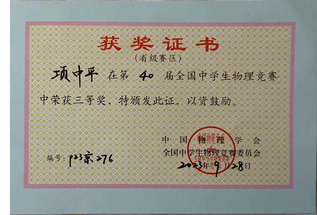2023年9月第40届全国中学生物理竞赛预赛中取得一等奖12人、二等奖19人、三等奖19人的佳绩!