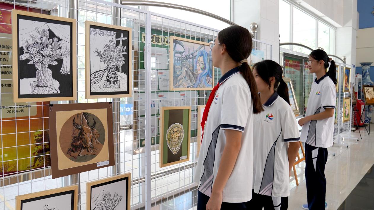 金秀荣校长认真参观了展览,对展览给予了很高的评价,对肖雅欣同学的才能给予肯定,并鼓励她保持对艺术的热忱和坚持。