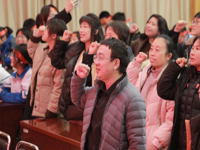 最后的宣誓环节将大会推向高潮!教师方阵率先宣誓,他们承诺将恪尽职守,精诚团结,科学备考,为学子们保驾护航,做他们最坚强的后盾!