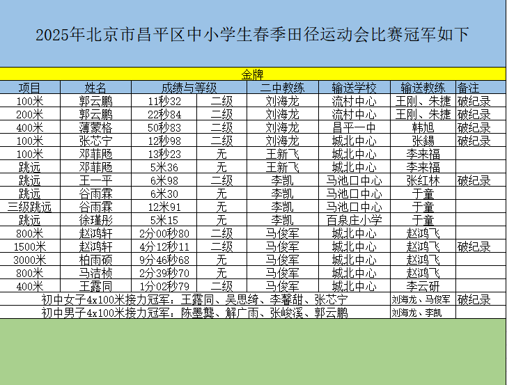 2025年4月26日-27日,昌平二中在2025年昌平区中小学生春季田径运动会上取得骄人成绩!