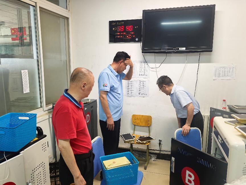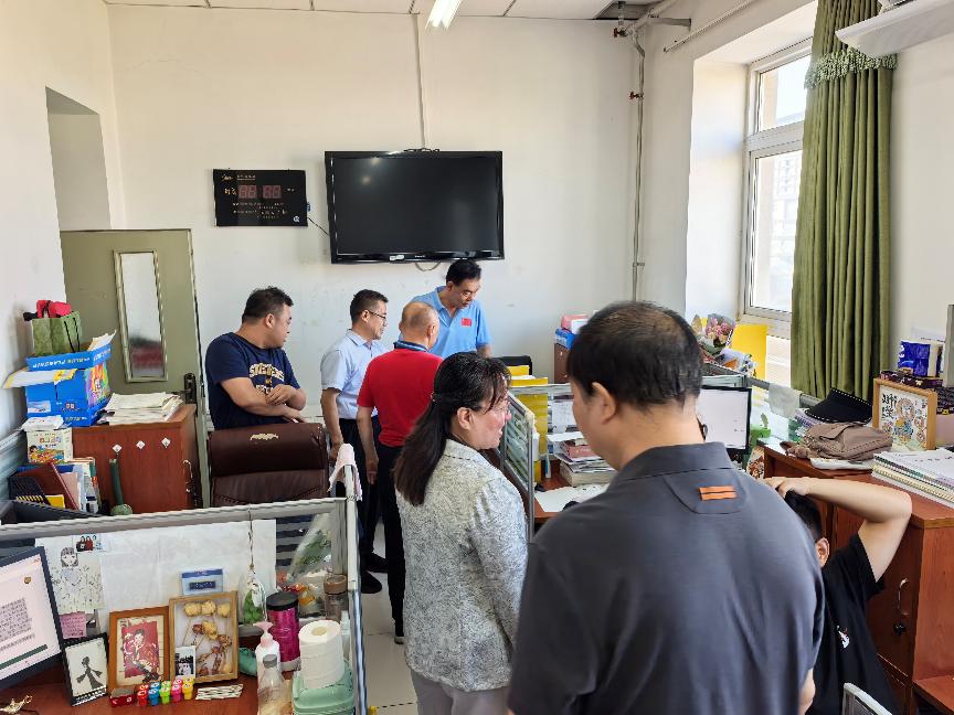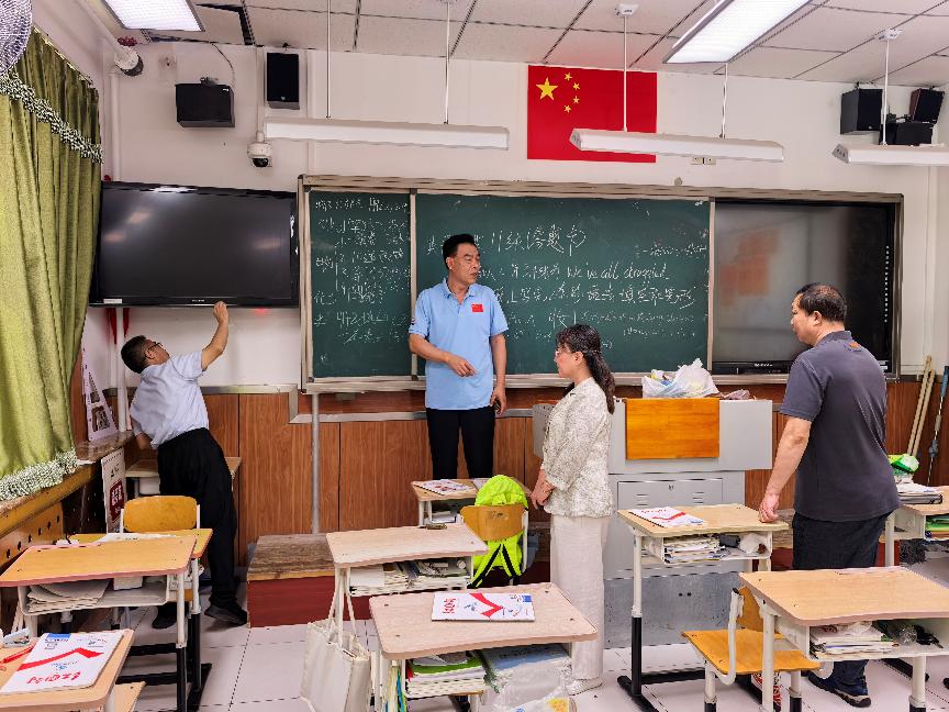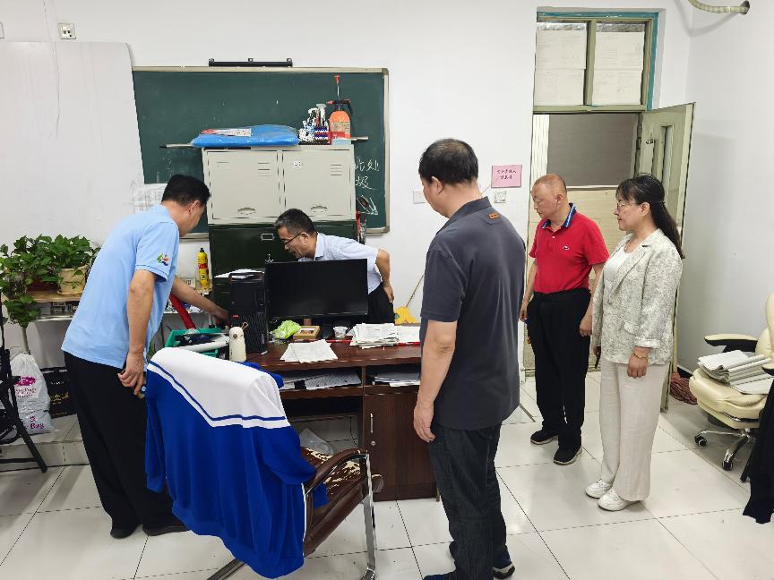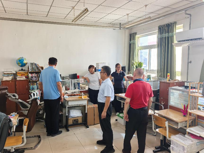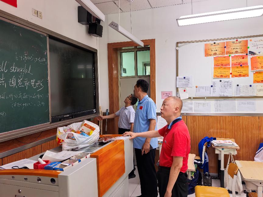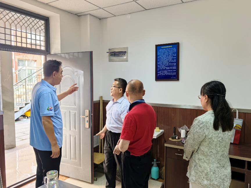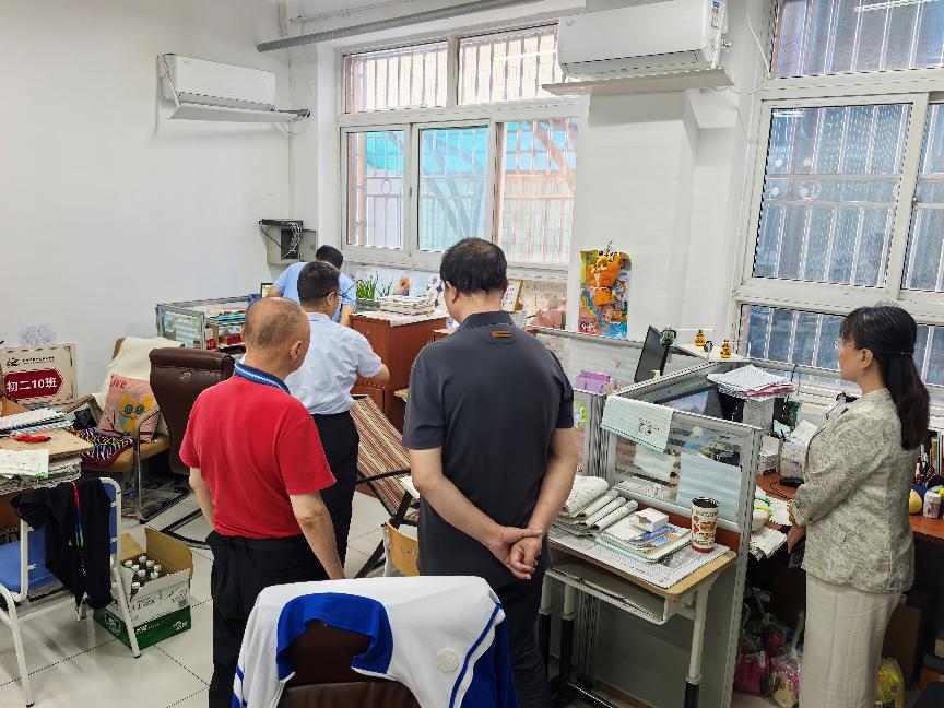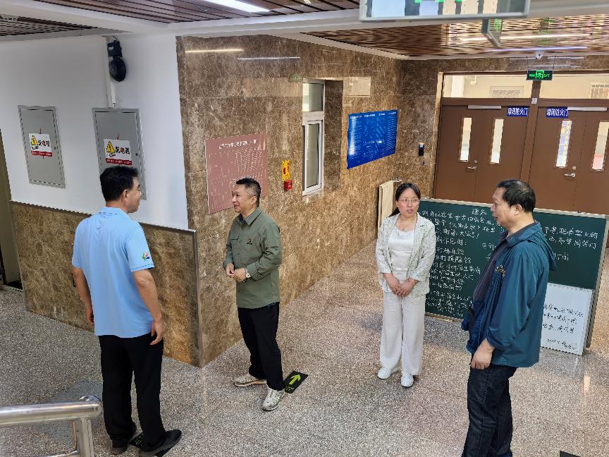 2025年“国庆节”“中秋节”前夕,为进一步强化校园安全管理,落实好两节期间的校园安全工作,昌平二中政府街校区结合区教委相关文件精神及当前安全形势,学校安全工作领导小组在放假前夕组织了一次全面的安全隐患排查。本次隐患排查在昌平二中教育集团党委书记李继阳和总校长王志强带领下,党委副书记王世国,政府街校区执行校长张云,办公室主任、安管干部王洁睿,新疆部主任王继峰,办公室副主任石雪飞,安管干部胡玥共同检查。