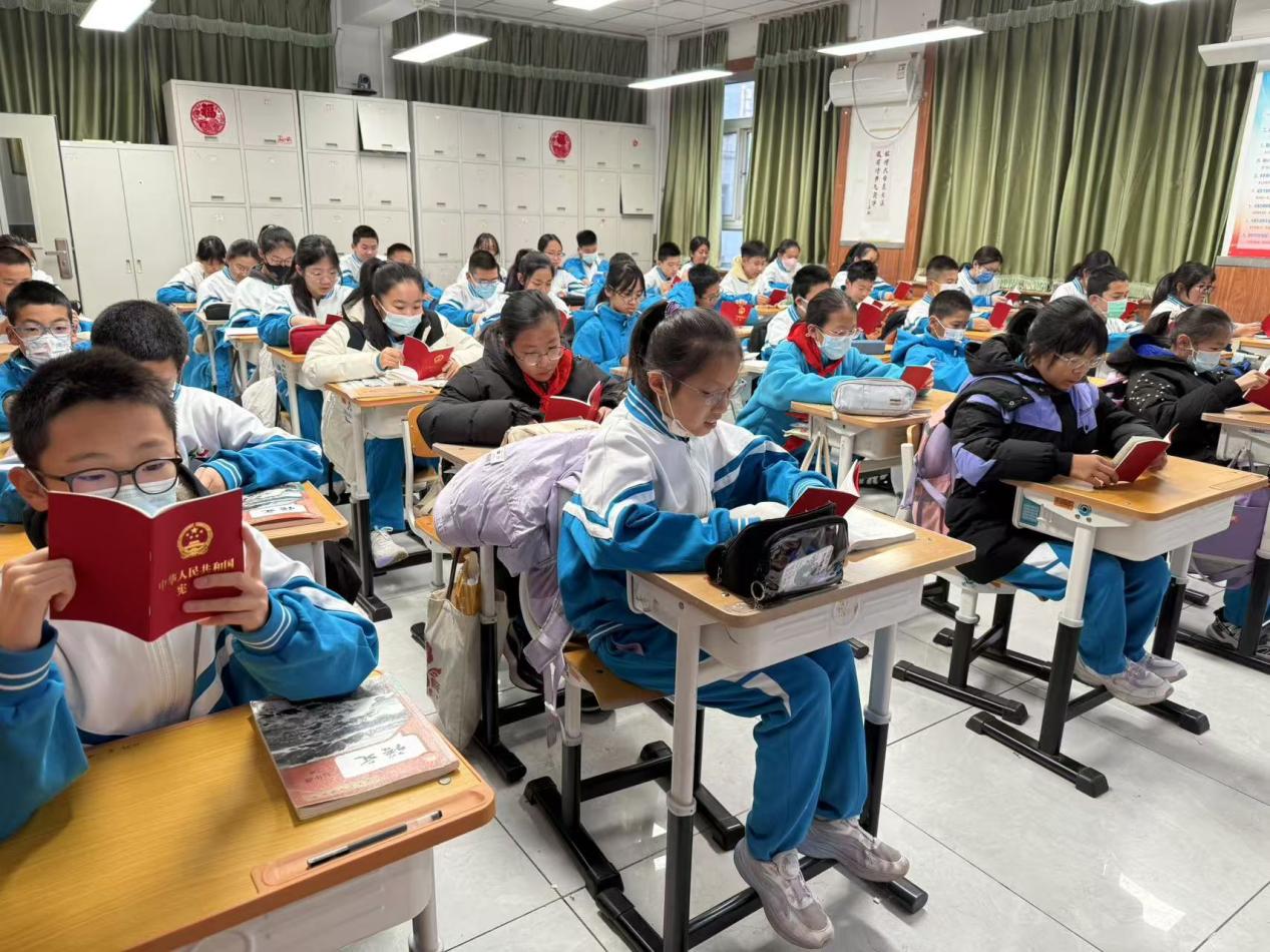 宪法诵读活动在班级如火如荼开展。师生们手持宪法文本,齐声诵读宪法序言及核心条款,铿锵有力的声音回荡在校园中。通过逐字逐句的诵读,大家深刻感悟宪法条文背后的精神内涵,进一步明确了公民的基本权利与义务,强化了“国家尊重和保障人权”“法律面前人人平等”等法治理念,让宪法精神在朗朗书声中浸润心灵。