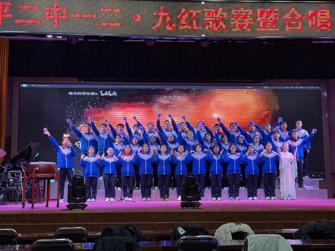 为纪念“一二·九”运动90周年,传承红色基因,厚植爱国情怀,我校“一二·九红歌比赛暨合唱比赛复赛”在报告厅隆重举行。来自各年级初赛一等奖的11个班级同台竞技,以歌声回望峥嵘岁月,用旋律抒发报国热忱,为现场师生呈现了一场震撼人心的红色文化盛宴。