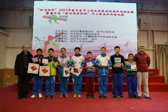 2017年12月27日,昌平二中乒乓球队在昌平三中体育馆,参加了由昌平区教育委员会、昌平区体育局主办的“阳光体育”2017年昌平区中小学生秋季运动会乒乓球比赛暨昌平区“第七届乒协杯”中小学生乒乓球比赛,分别获得初中组和高中组团体第一名。在初中男子单打比赛中,高文杰获第一名,张赫获第二名,韩叔衡获第三名,张家睿获第四名,白哲楷第六名,高中男子单打崔昊获第一名,钱笑宇获第六名,郝毅铭获第七名。教练员:梁烨老师。